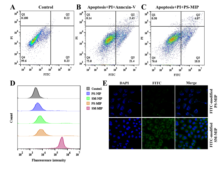 图2.磷脂分子印迹材料对凋亡细胞的识别