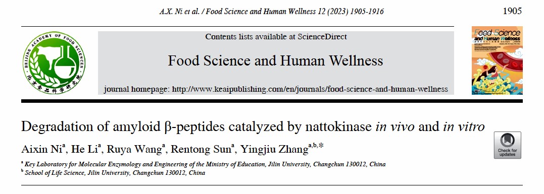分子酶学工程教育部重点实验室的张应玖教授课题组在获得纳豆激酶(Nattokinase,NK)的基础上,研究发现NK可以有效催化Aβ42聚集体的降解,同时可降低生理条件下血液中Aβs的水平,并间接促进了阿尔茨海默症模型鼠脑内Aβ42水平的下降和淀粉样斑块的减少。该成果以“Degradation of amyloid β-peptides catalyzed by nattokinase in vivo and in vitro”为题,发表在《Food Science and Human Wellness》(影响因子8.022)上。论文第一完成单位为司机社