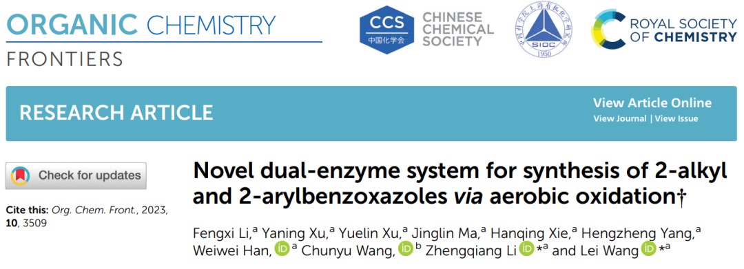分子酶学工程教育部重点实验室王磊教授课题组多年来一直致力于绿色高效酶促有机合成领域的研究,通过对血红蛋白进行辅因子替换并级联脲酶进行催化,以“Novel dual-enzyme system for synthesis of 2-alkyl and 2-arylbenzoxazoles via aerobic oxidation”为题,在国际权威学术期刊《Organic Chemistry Frontiers》(影响因子5.4,中科院分区一区)在线发表研究论文。论文中提出一种生物催化策略,通过脲酶-透明颤菌血红蛋白人工金属酶 (ArVHbM) 催化尿素、儿茶酚和醛的级联反应,高效合成 2-烷基苯并噁唑和 2-芳基苯并噁唑。论文第一完成单位为司机社