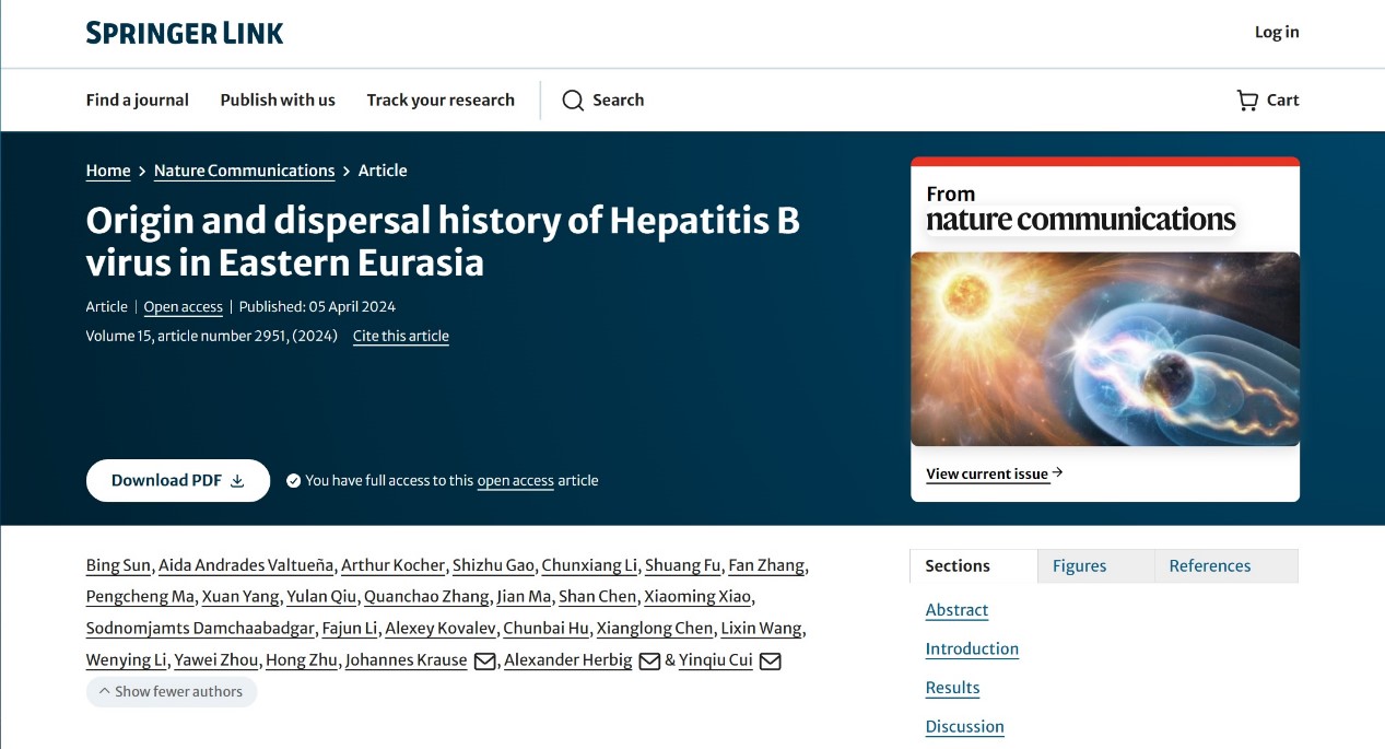 崔银秋教授团队与国内外多家单位合作,利用最新的古DNA技术,在乙型肝炎病毒的起源与演化研究上取得新进展,研究论文“Origin and dispersal history of Hepatitis B virus in Eastern Eurasia”在线发表于4月5日的Nature Communications上。
