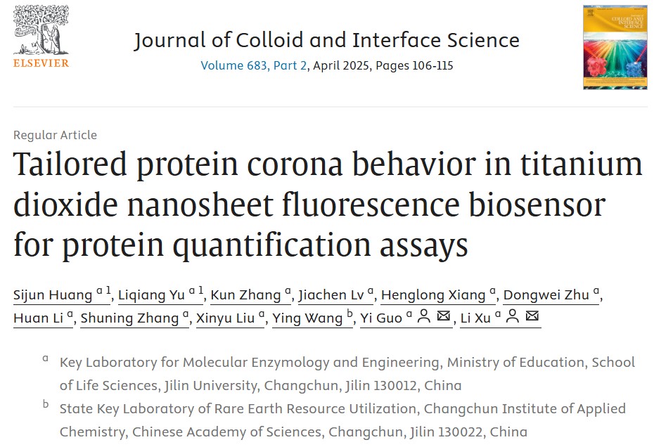 分子酶学工程教育部重点实验室徐力教授、郭轶教授团队发现,Tween-20分子能够改变二氧化钛纳米片(TiO₂-NS)对蛋白质的吸附行为,并由此开发了一种Tween-20介导的定制蛋白质冠方法,并以此实现对微量蛋白的定量。基于密度泛函理论(DFT)计算和分子对接的模拟结果,Tween-20可以通过聚乙二醇嵌段的亲水端与TiO2-NS表面相结合,同时疏水端与微孔板上吸附蛋白的疏水区域结合,从而增强二者的相互作用。在此基础上,建立了一种反向捕获策略,即通过微孔板上结合的微量蛋白捕获缓冲液中的TiO2-NS,进一步利用捕获的TiO2-NS的光催化作用产生可检测的荧光信号,实现对蛋白的定量分析。研究论文“Tailored protein corona behavior in titanium dioxide nanosheet fluorescence biosensor for protein quantification assays”发表在国际学术期刊《Journal of Colloid and Interface Science》上。论文第一完成单位为司机社