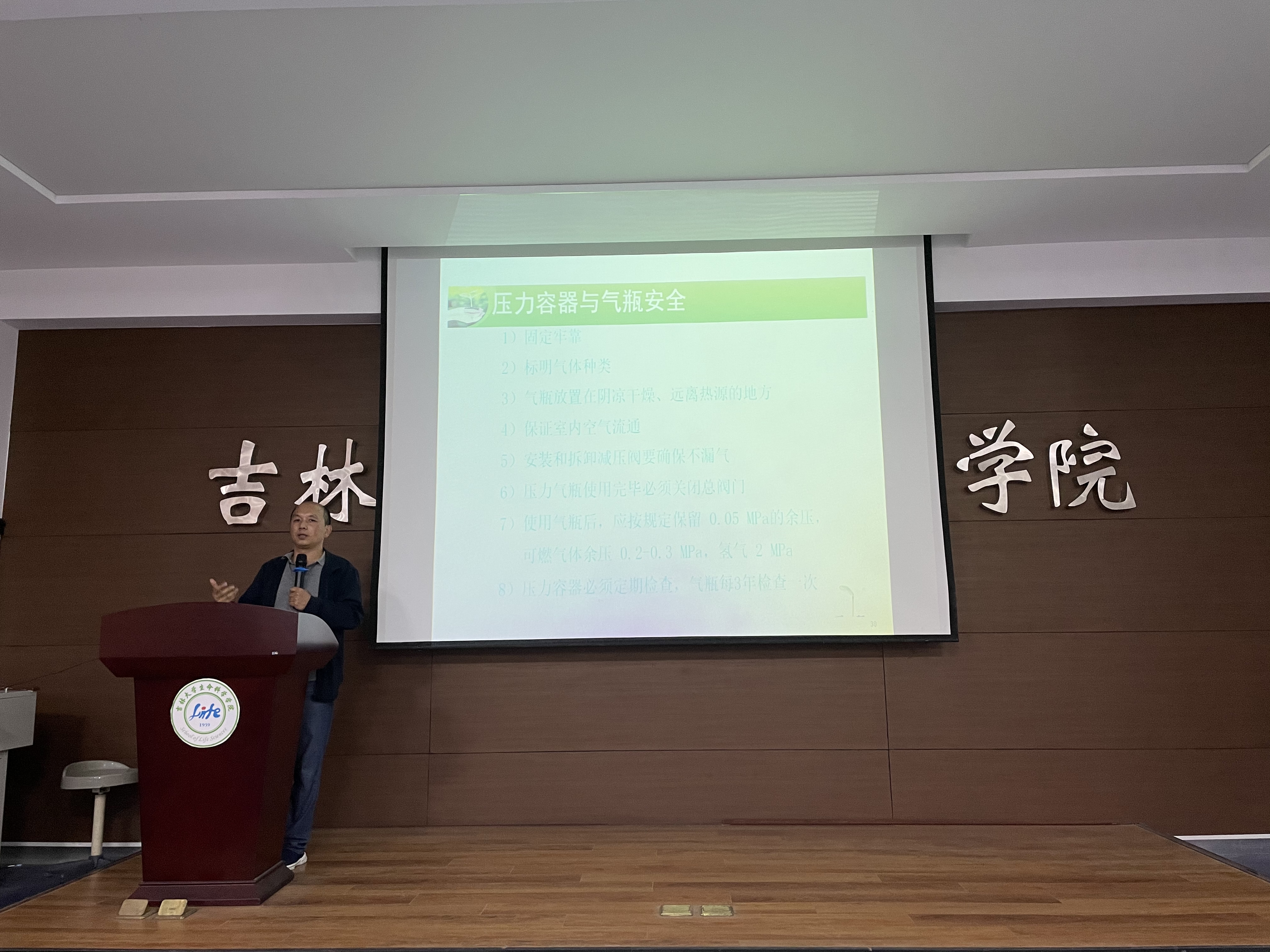 “实验室危化品安全管理规范”讲座在生命科学楼107会议室举行,讲座由孟令军老师主讲。党委书记白宇、副书记林相友、副院长崔帅、实验室安全管理小组成员以及各实验室安全协管员参加了此次讲座。