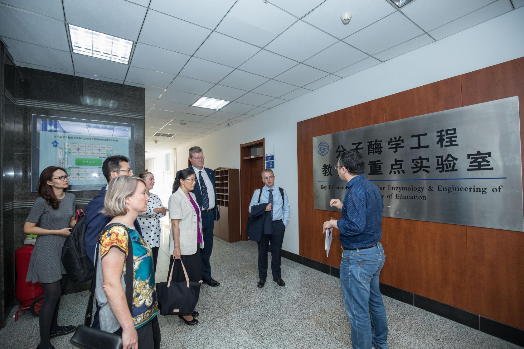 副院长马俊锋首先代表学院欢迎基思•布瑞南教授一行再次来访,并回顾了双方在学生合作培养方面所取得的进展。目前我院已与英国曼彻斯特大学生物医学与健康学部开展了3+2双学位项目和唐敖庆理科实验班学生派出项目。此外自2016年以来我院已有20多名学生参加由曼彻斯特大学组织的暑期短期交流项目Summer School,深受学生好评。马俊锋在座谈中指出,本科生项目的开展是双方合作的良好开端,希望今后能在研究生、教师以及科研方面增进交流,努力推进更多领域的合作。接下来基思•布瑞南教授、孟庆军教授与雷切尔•考恩博士分别对曼彻斯特大学整体情况、生物科学学院及生物医学健康学部高等教育学院进行了详细的介绍。在场学生对曼彻斯特大学开展的交流项目进行了提问,曼大代表针对提出的问题进行了详细解答。最后学校教师教学发展中心和教务处就教师培训事宜与曼大代表交换了意见,并达成初步共识。座谈会结束后,李全顺教授带领曼大代表参观了分子酶学工程教育部重点实验室,并与代表就科研合作方向进行了探讨。
