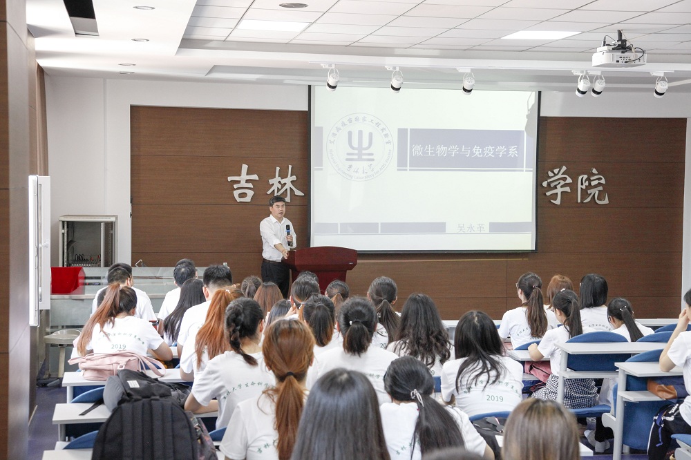 7月6日上午9时,夏令营开营仪式在生命科学楼学术报告厅举行,院长于湘晖、副院长陈妍、副院长崔银秋、分子酶学工程教育部重点实验室副主任李全顺、微生物与免疫学系主任吴永革、生物药学系主任高波、生物工程系主任高仁钧等出席了开营仪式,开营仪式由副院长马俊锋主持。院长于湘晖在致辞中对各位营员的到来表示热烈欢迎,希望营员们通过夏令营活动加深对学校和学院的了解,增进营员与导师之间的沟通与交流。开幕式后,李全顺教授、吴永革教授、王迪教授、和崔银秋教授分别为夏令营做了主题报告。