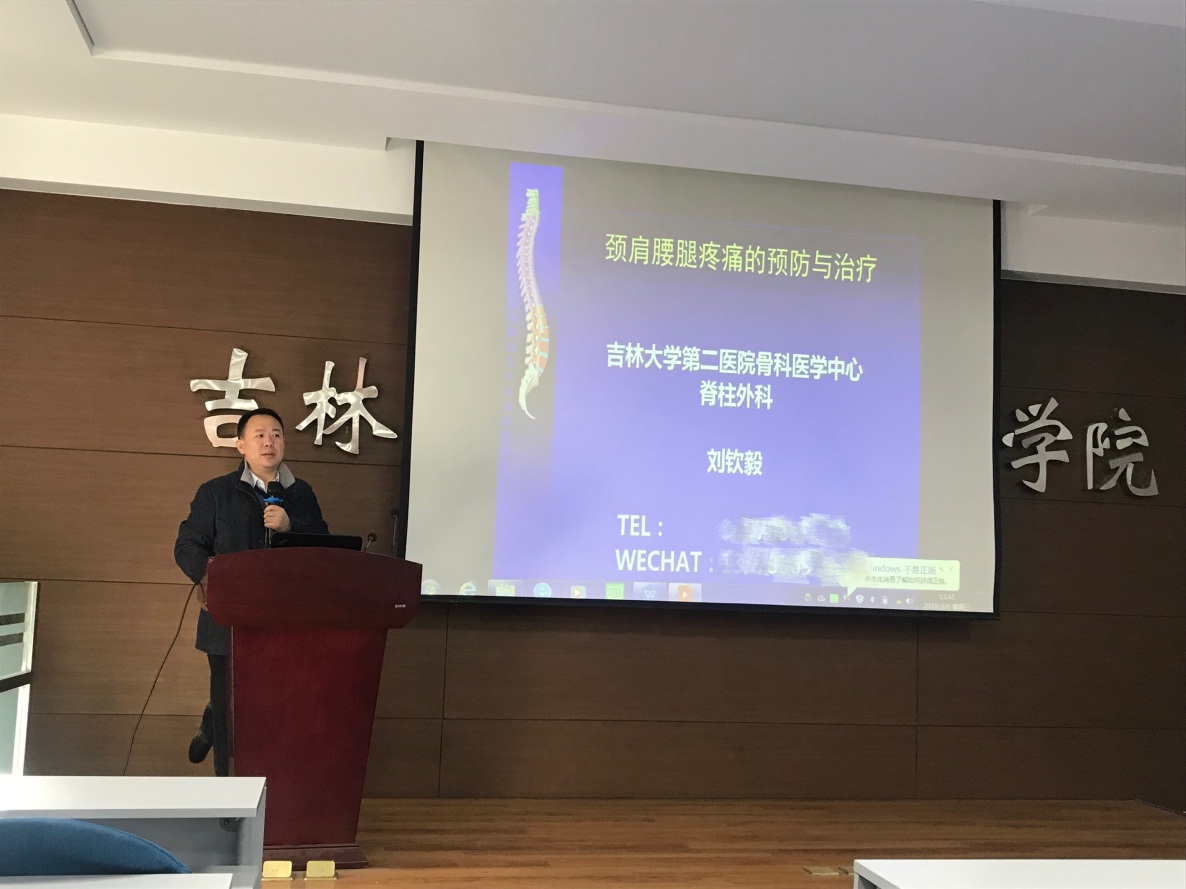 3月6日下午,我院联合行政学院、体育学院在生命科学楼107室举办了一场“颈肩腰腿疼痛的预防与治疗”讲座,特邀请吉大二院骨科医学中心脊柱外科副主任刘钦毅教授主讲。司机社