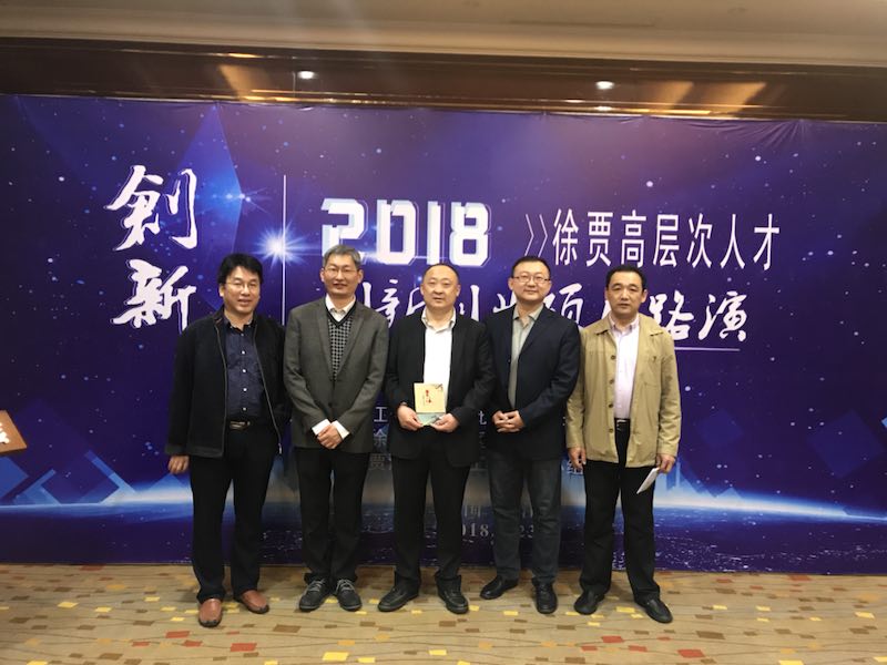 代表团一行4人参加由江苏省第十批科技镇长团、徐州工业园区、贾汪区人才工作领导小组办公室承办的2018徐贾高层次人才创新创业项目路演对接活动。徐州市科技局副局长高存宝、贾汪区委组织部部长陈健、贾汪区副区长(江苏省第十批科技镇长团贾汪团团长)唐凯、司机社