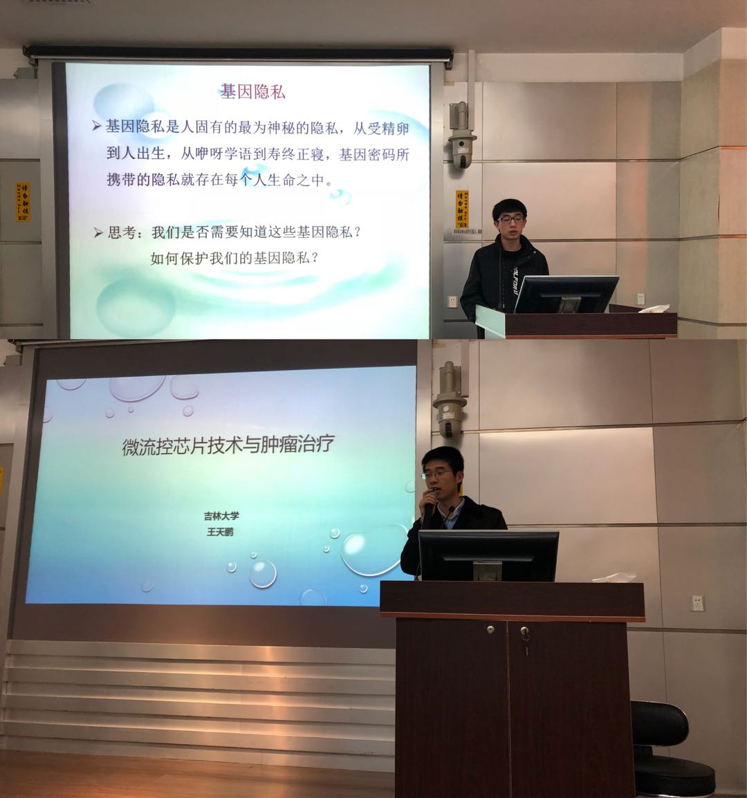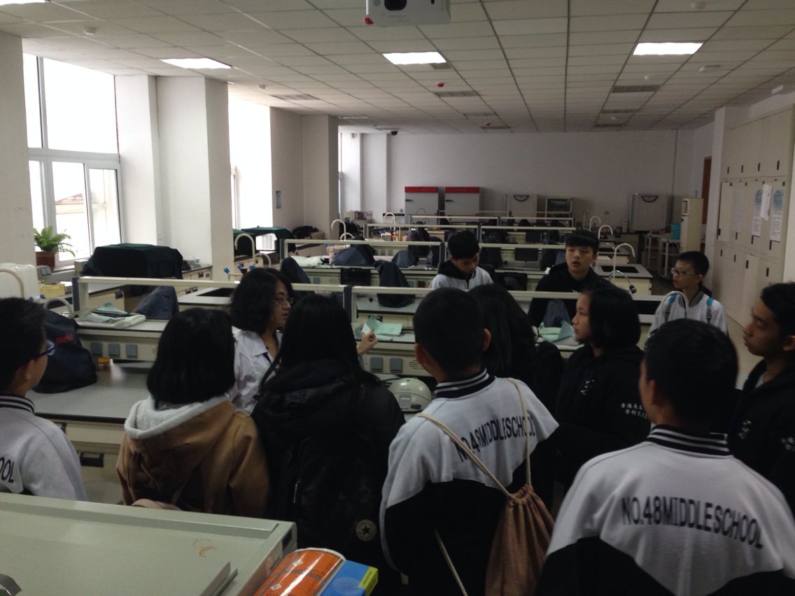 研究生杨洁冰、王天鹏两位同学分别为大家做了题为“人类基因组和基因技术”和“微流控芯片技术与肿瘤治疗”的学术讲座,内容深入浅出、充满趣味,赢得了在场师生的热烈掌声。讲座结束后,在国家级生物实验教学示范中心老师的带领下,来访师生们对实验中心进行了参观,对于中心各种先进的现代化仪器设备,参观的学生们显得兴致勃勃,并与老师们进行了积极互动。参观结束后,来访师生游览了司机社
