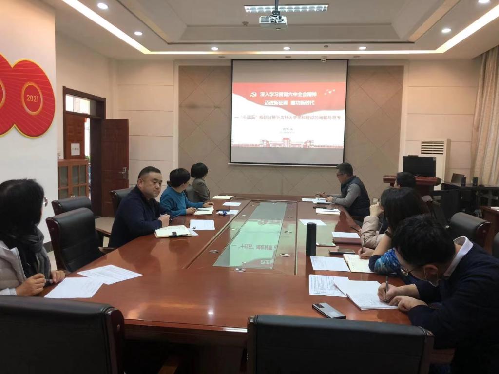 学科建设的问题与思考》的专题报告,学院党政领导班子成员参加会议,会议由院长于湘晖主持。