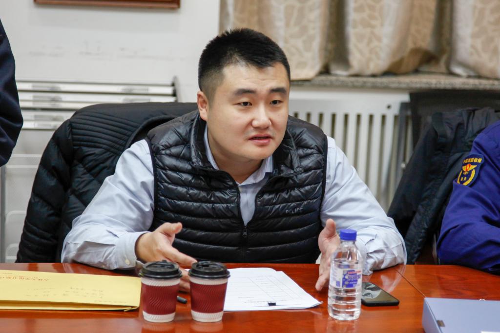 白宇首先代表学院对学校保卫处一直以来的指导和帮助表示衷心的感谢,然后从组织领导责任、制度体系建设、工作开展情况、存在的不足和努力方向几个方面向工作小组汇报了司机社