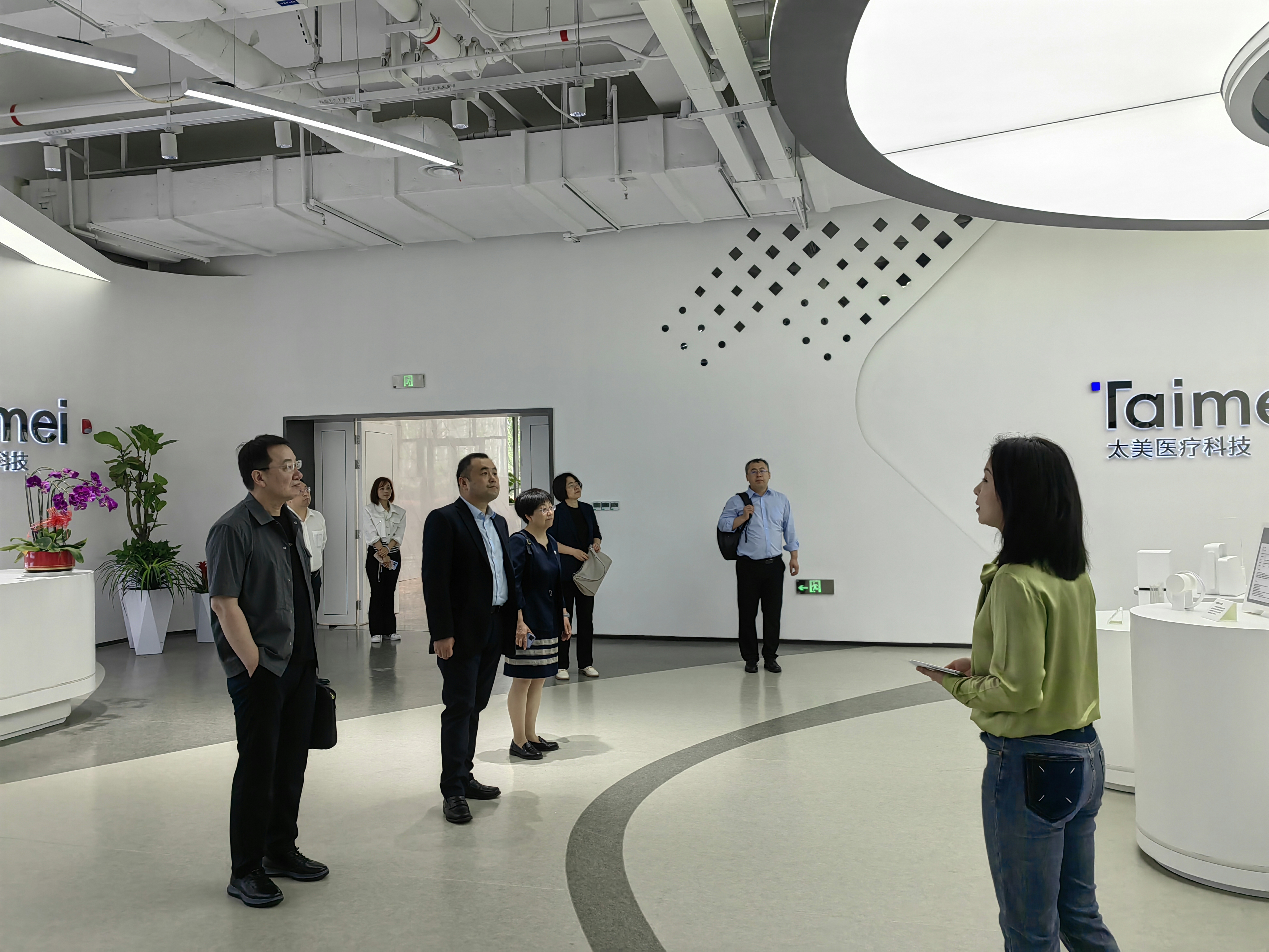 5月27日调研团来到太美医疗科技股份有限公司进行考察。首先,调研团参观了企业技术平台,随后进行座谈交流。座谈会上,公司负责人赵璐介绍了企业情况和岗位需求,并表示,公司正在加快建设生物医药产业创新高地,需要更多生物医药领域的人才加入。白宇表示,帮助学生就业不仅是单纯找个工作,更需要着重考虑学生未来进入行业后如何快速成长。学院与用人单位形成良性互动,建立校企合作机制,包括校企共建人才培养基地等联合培养模式,逐渐摸索出一些比较有效的措施,为学生提供更多的就业机会和实践平台,为学生成长发展提供更好的支持和服务。