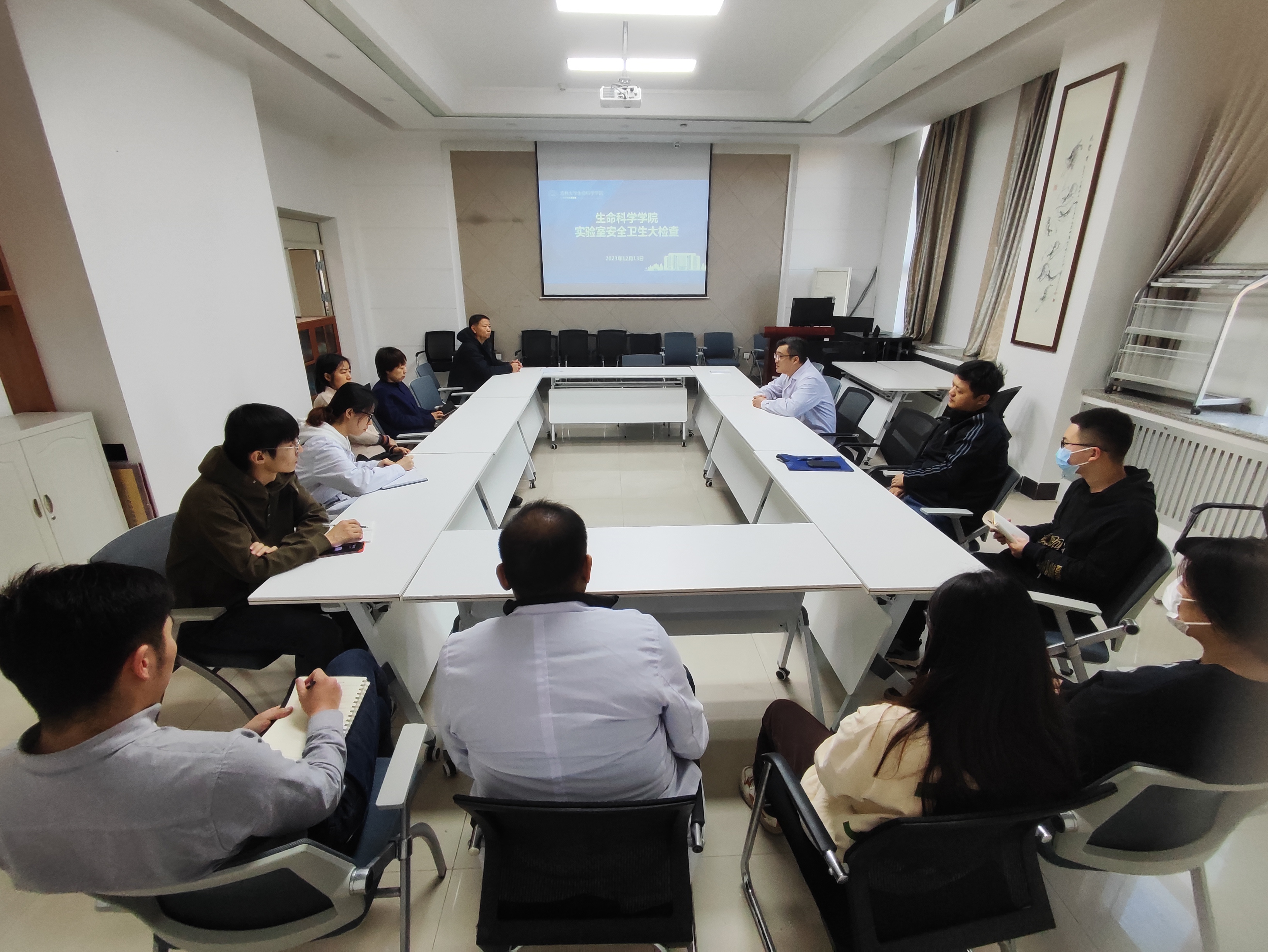组织开展2023年秋季学期实验室安全卫生检查工作。学院行政副院长崔帅、学院实验室安全管理工作小组成员和各实验室协管员安琳、张吉辰、张文婕、朱晟瑩参加了本次检查工作,检查工作部署会由崔帅主持。
