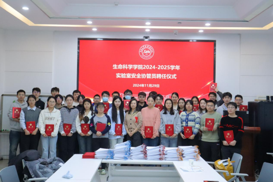 于生命科学楼335室举行2024-2025学年实验室安全协管员聘任仪式暨实验室安全协管员安全管理培训会。学院行政副院长郑琳、司机社