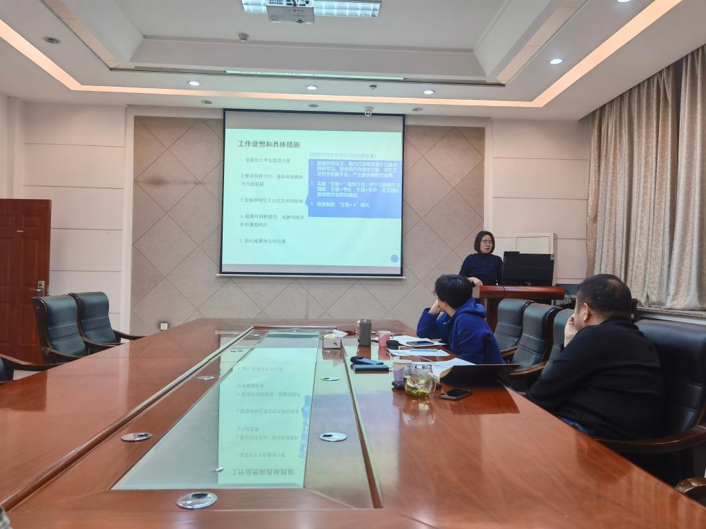 副院长陈妍围绕本科教学、招生以及培养工作,提出要以新版本科人才培养方案制定为契机,组织论证好课程设置、课程思政、实施路径等各环节,面向一流学科建设构建一流人才培养体系;以拔尖2.0基地建设、国家一流专业和一流课程建设为引领,推动教育教学改革,持续积累教学成果,发挥区域辐射引领作用;以刚刚获批的虚拟教研室建设为载体,组织教师积极参加教育教学研究,建立一支师德高尚、理念新、水平高、教育技术能力强的教学育人团队。