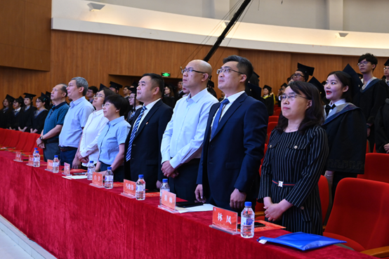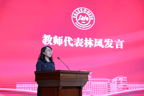 不断壮大自强的见证者和亲历者;2017级本科生班主任代表林凤代表全体教师发言。她对同学们的离别表示不舍,希望同学们以“读书为舟”,在社会的大舞台中展现自己的光芒,“海阔凭鱼跃,天高任鸟飞”,教导学生要承负应担的责任、要坚持终身学习、要正确看待工作、要对人对事常怀感恩。