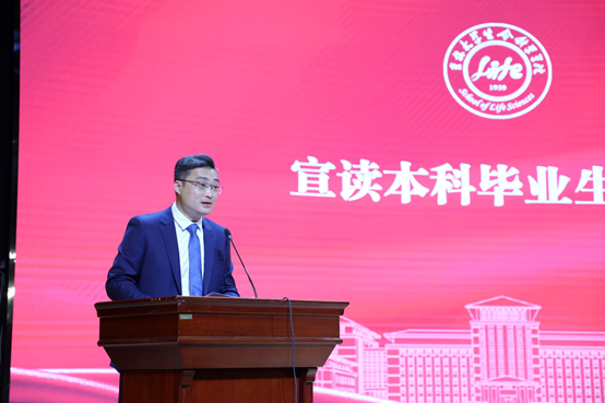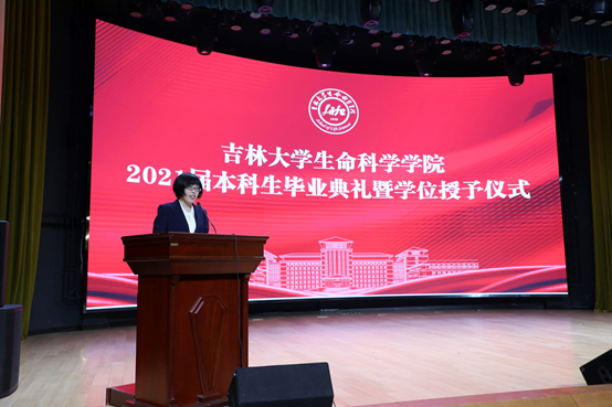 最后由于湘晖院长讲话,于院长代表学院向圆满完成学业、即将踏入人生新征程的全体本科毕业生表示祝贺。在临别之际,她叮嘱同学们要做到以下四点:一是在时代的背景下明确人生目标,将个人的成长成才融入于国内学科发展对于人才的迫切需求之中,融入于国家富强、民族复兴的发展进程之中。二是在生科血脉的赓续中传承科学精神,秉持追求真理、勇攀高峰的科学精神,勇于创新、严谨求实的学术风气,在科学前沿孜孜求索、不断、突破。三是在纷繁复杂中守住善的灵魂,用善良理解自己,尊重他人。四是在躬身践行中踩下“实”的脚印,做人要“实”,做事要“实”,做学问也要“实”。希望同学们走上社会、走上岗位后,要有理想情怀,肩负好实现个人价值和服务国家建设的双重责任,矢志追求更有高度、更有境界、更有品位的人生。