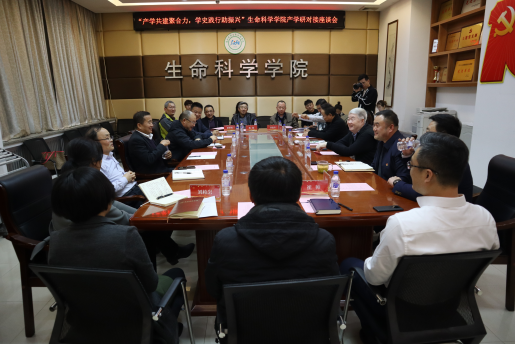 “产学共建聚合力,学史践行助振兴”产学研校企对接座谈会在生命科学楼335会议室召开。吉林省御华府生物食品工程有限公司董事长朱海宽,吉林黄栀花药业有限公司董事长王道君,司机社