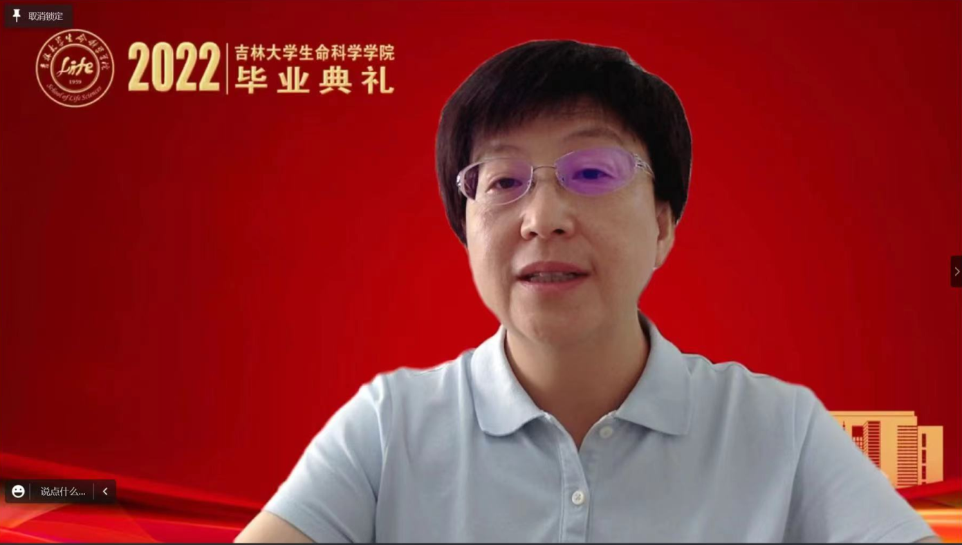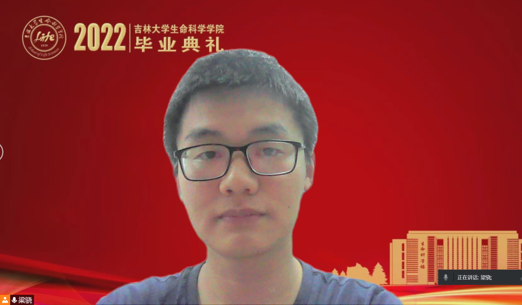 随后,2022届毕业本科生代表冷思宇同学发言,感情真挚诚恳饱含对学院的感激和眷恋。她首先分享了在校期间的学习生活体会和成长成才的经历,并表示是学院老师们的坚守、付出和陪伴坚定了她投身生命科学研究的梦想。同时表明,作为新时代的青年,生逢盛世、肩负重任,定会不忘初心、砥砺前行,跑出当代生科学子的最好成绩。最后,向学院、老师和全体毕业生献上真挚的祝福。