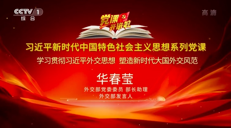 本期节目以习近平外交思想为主题,邀请外交部党委委员、部长助理,外交部发言人华春莹担任主讲人,以《学习贯彻习近平外交思想塑造新时代大国外交风范》为题,从“回答时代之问 彰显思想伟力”“植根人民情怀 心系天下大同”“精彩冬奥外交 尽显大国风范”三个方面,展现新时代中国特色大国外交风范。