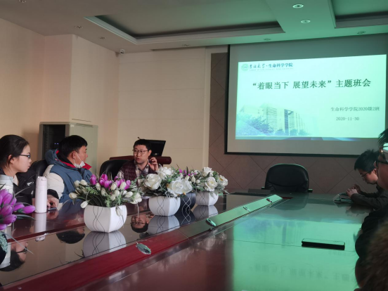 2020级2班以班级为单位开展了“着眼当下,展望未来”主题班会,参加本次会议的有辅导员齐鹏老师,班主任苏维恒老师,2016级优秀同学崔梦珂,王雨朦以及2020级2班全体同学。
