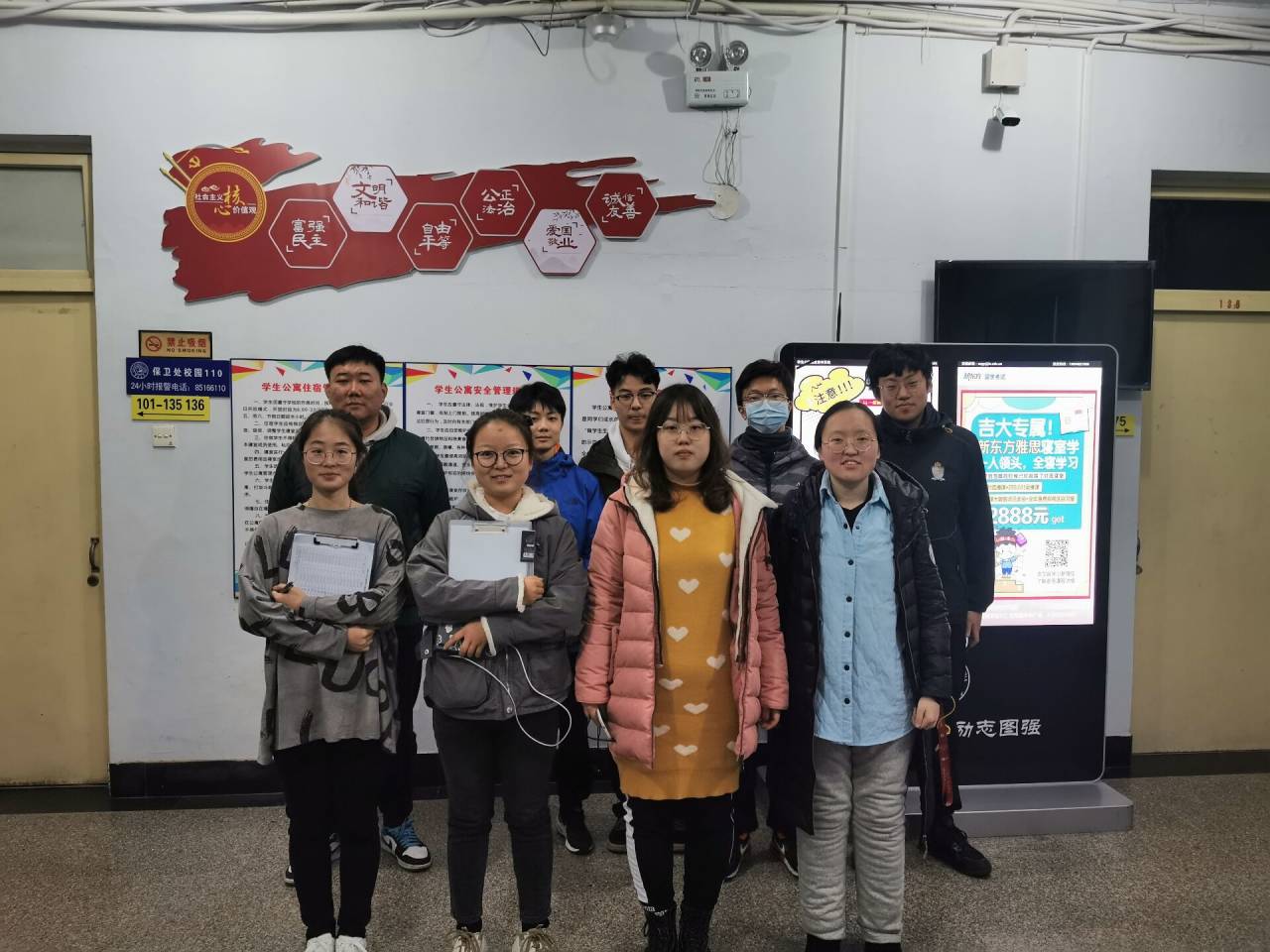 党委副书记崔帅、辅导员丁子芮、齐鹏,学生会学生服务部全体成员及各年级生活委员对本科生学生公寓进行了安全卫生检查。
