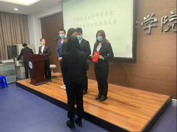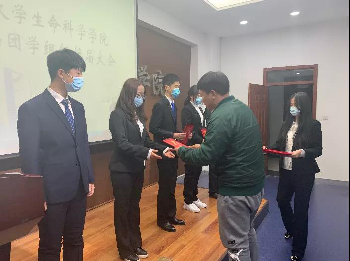 2020届学生组织换届大会于2020年10月24日18时在生命科学楼107室召开。生命科学学院党委副书记崔帅老师,学院团委书记、2018级辅导员丁子芮老师,2019、2020级辅导员齐鹏老师,研究生兼职辅导员于佳宁老师,2020届团学联组织学生干部及部分学生代表参加此次大会。