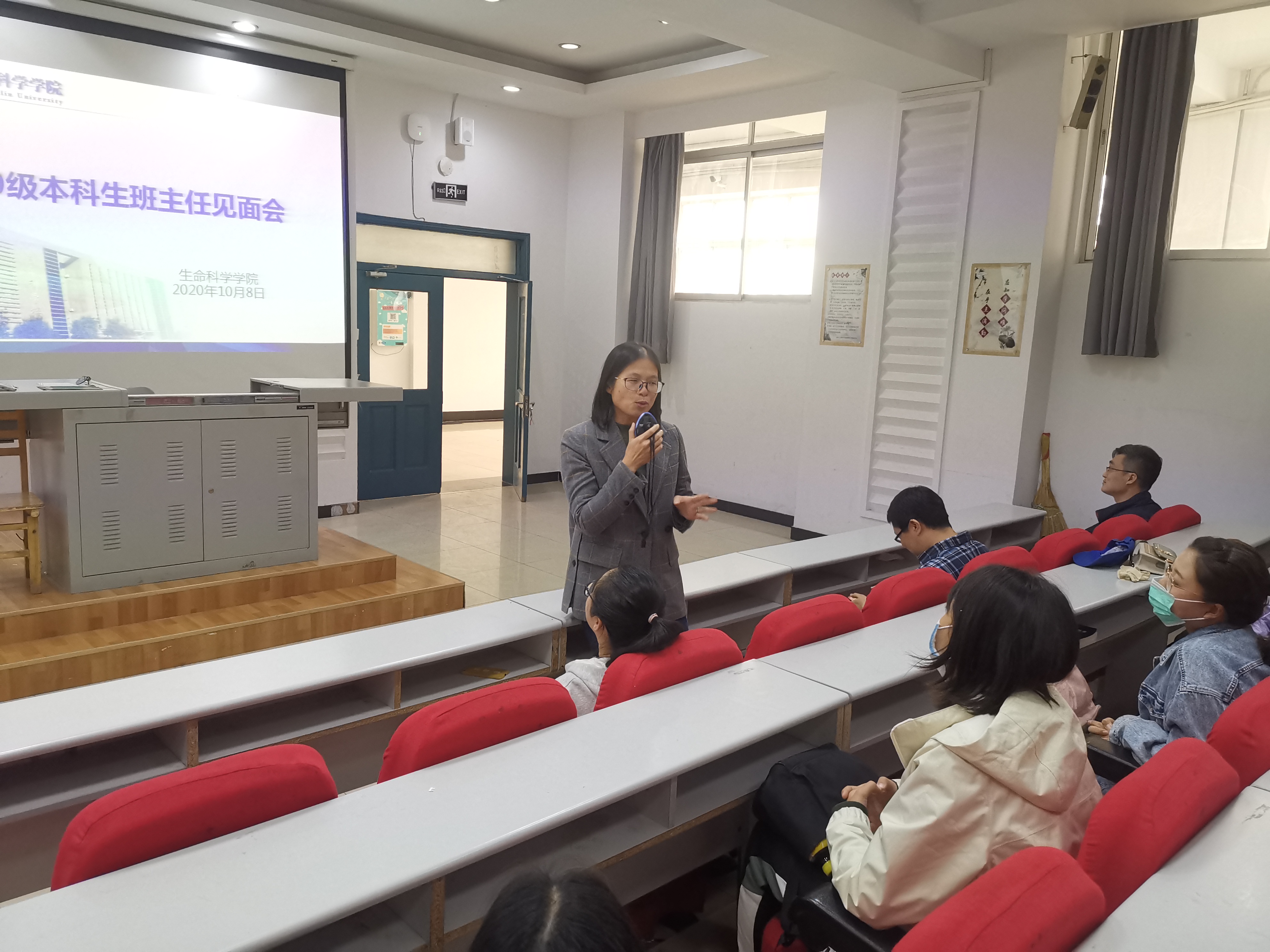 首先,由齐鹏老师逐一介绍了各班班主任老师;接着,各位班主任老师对2020级新生表示热烈的欢迎,并分别简要介绍了自己承担的本科生教学工作以及科研方向,表达了陪伴新同学共同进步成长的强烈愿望,鼓励新同学多沟通多接触。最后,崔帅老师提到,学院为了进一步提升本科生培养质量,已经为全体本科生选配了专业骨干教师担任班主任,嘱托同学们要尽快调整作息规律,灵活、合理地安排时间,要适应大学的学习节奏,并鼓励同学们多和班主任交流。