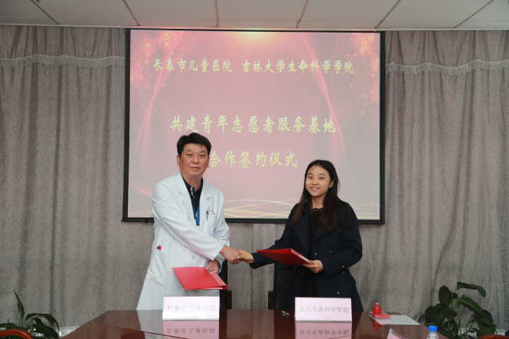 共建青年志愿者服务基地协议书”。吉林省儿童医疗中心、长春市儿童医院院长兼党委书记姜洪波、护理部主任张朋、门诊办主任魏志刚、社工部主任谭璐作为儿童医院代表,司机社
