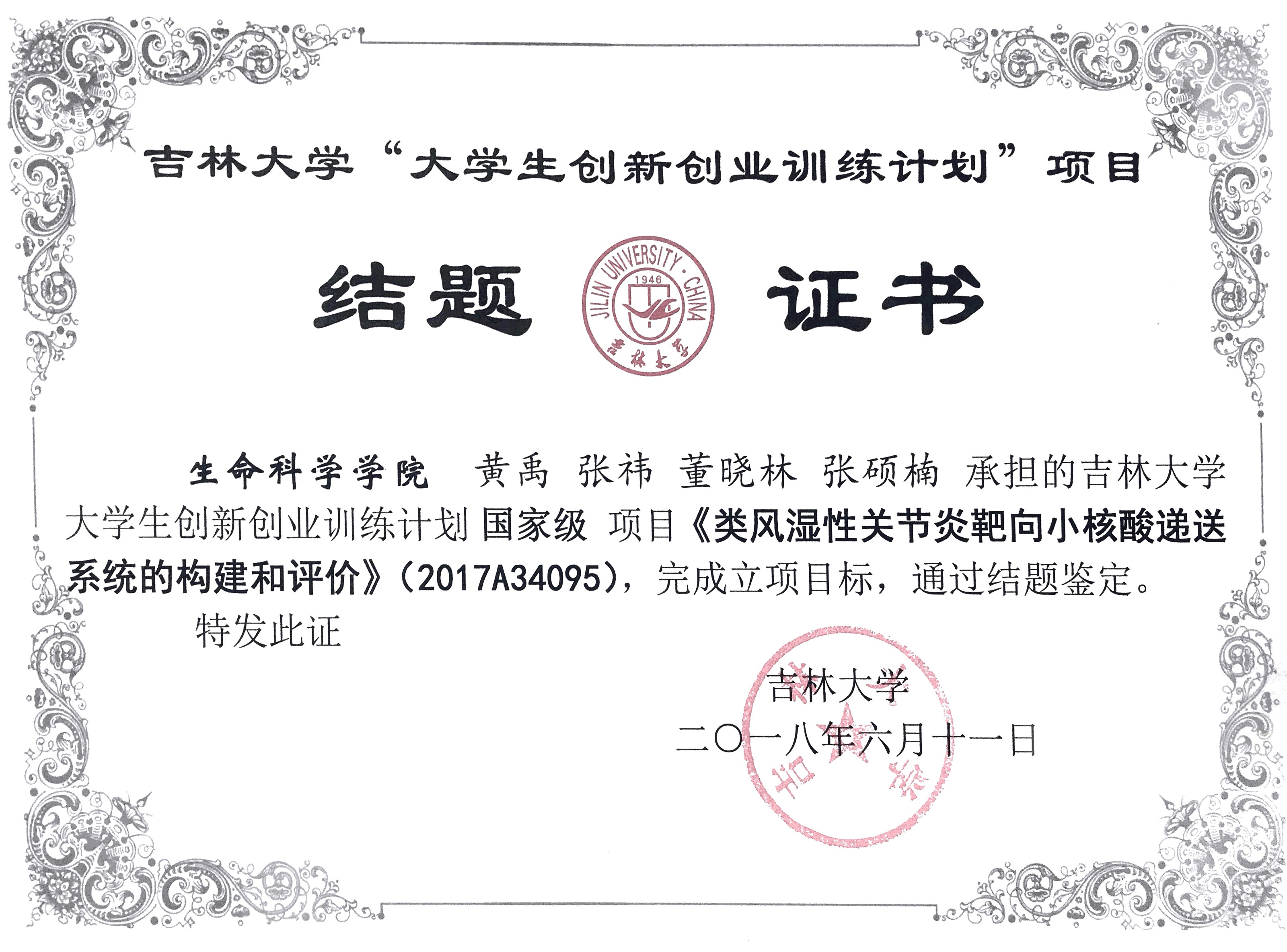 大二下学期,张祎积极申报了大学生创新创业训练计划,并很荣幸地加入了李全顺教授的类风湿性关节炎课题组,和同组成员一起共同接触一个全新的领域。