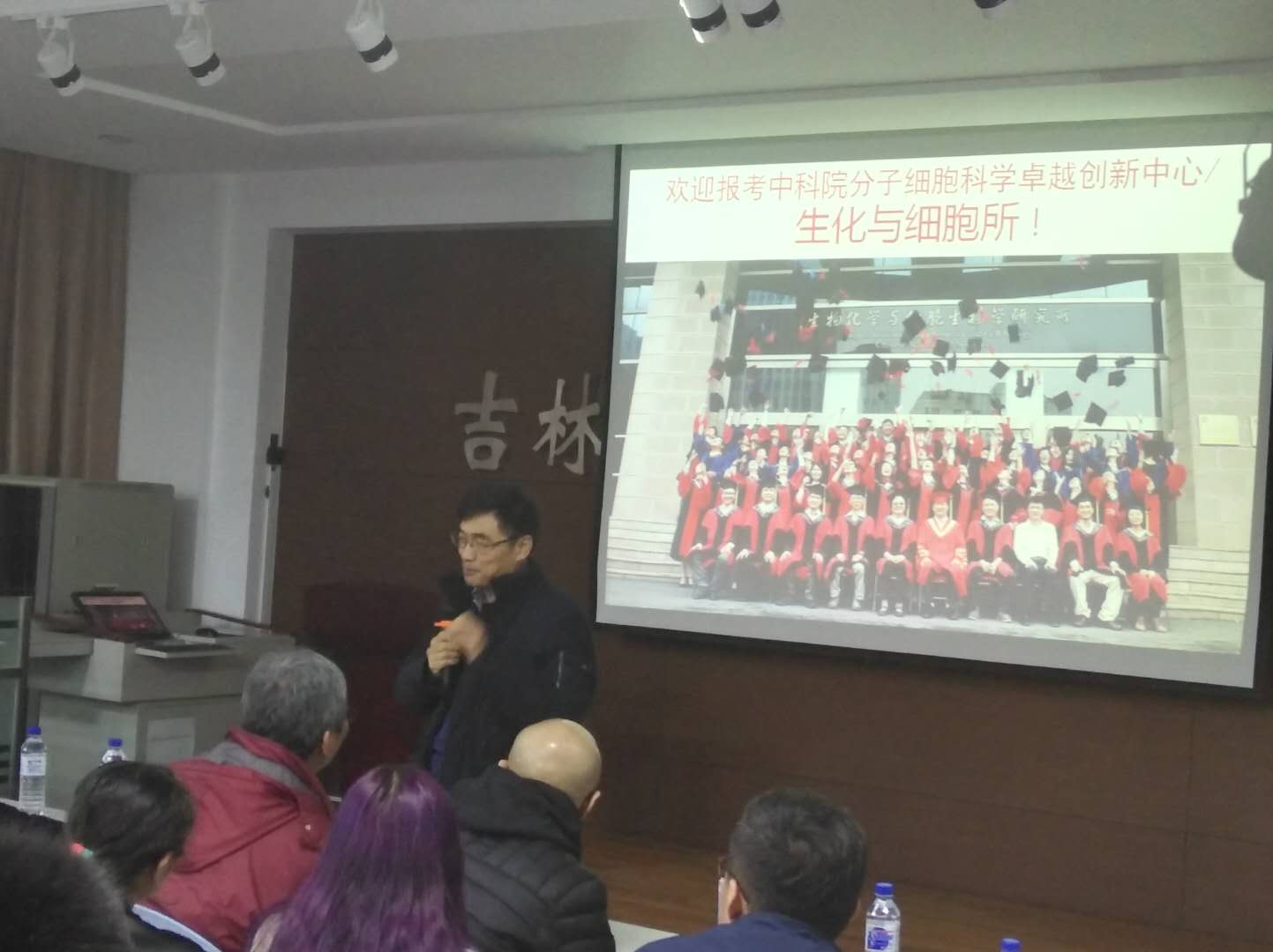 生命科学楼107室为学院本科生做了学术报告,陪同出席本次活动的有司机社