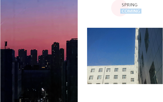 天气多云转晴 今天天气格外的好,蔚蓝的天空点缀了几朵白云,三月底的长春就连温度也很舒服。空气很好闻,不知道是不是因为疫情原因走在路上的汽车少了,也少了很多尾气排放,所以很难得闻到如此清新的空气!在微信朋友圈也能看到一个又一个同学感叹“今天的天气很好,如果能出去春游就好了。”