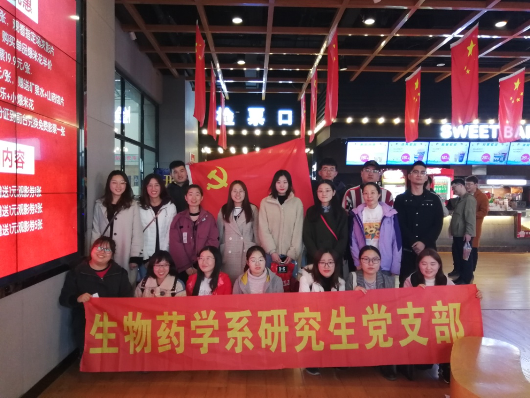 为了庆祝中华人民共和国成立70周年,同时也为了让党员同志更好的了解祖国建国以来的历史及改变,增进爱国情怀,2019年10月25日下午,生物药学系研究生党支部与实验中心技术中心联合党支部一起到吉大巨幕影城观看电影《我和我的祖国》。