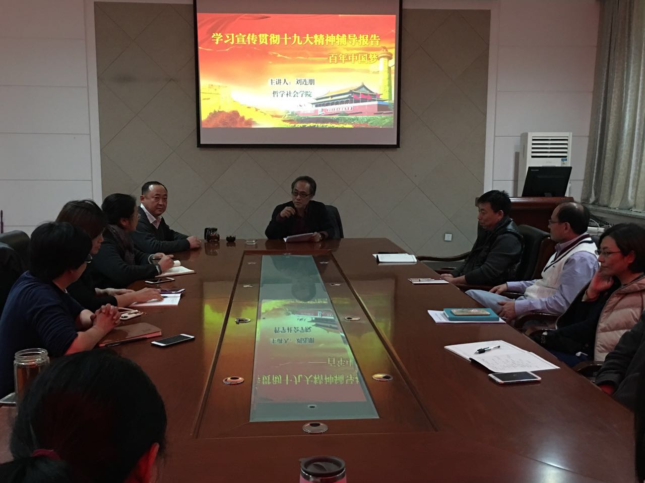 党委在生命科学楼335会议室召开理论中心组(扩大)学习会议,邀请哲学社会学院中国哲学专业刘连朋老师做题为《百年中国梦》的辅导报告。会议由学院党委书记李佰志主持,学院党政班子成员、党委委员、纪委委员和全体党支部书记参加。