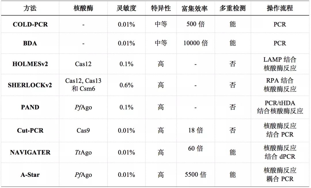 表1. 常见稀有基因突变富集检测方法比较