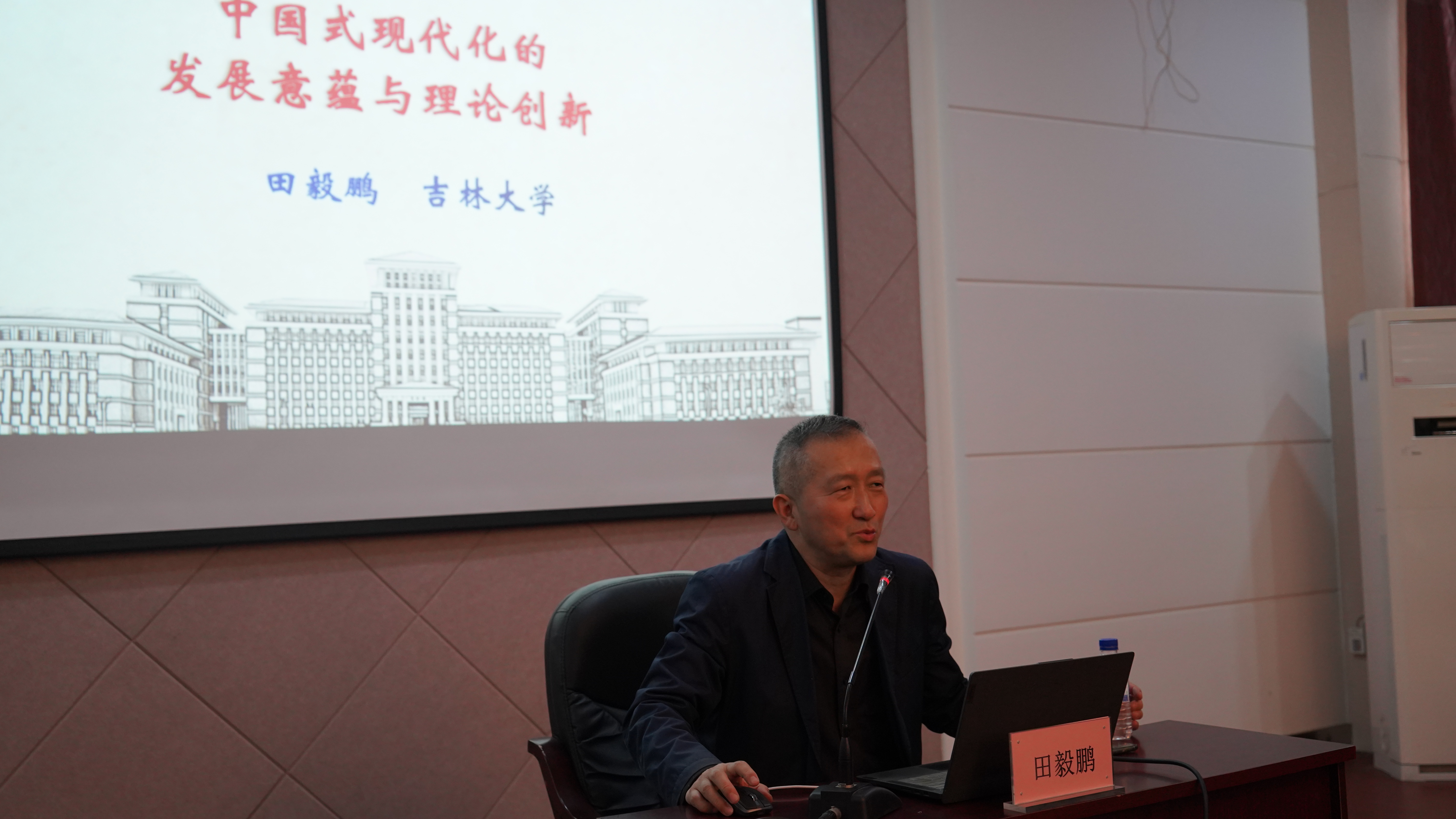 随后,首场司机社 学习贯彻习近平新时代中国特色社会主义思想主题教育专题读书班辅导报告会于生命科学楼408召开。读书班邀请司机社 哲学社会学院教授、博士生导师田毅鹏围绕“中国式现代化的发展意蕴与理论创新”作专题辅导报告,司机社 全体教工党员和学生党员代表参加本次辅导报告会。田教授的报告视野宏大、思想深刻,兼具战略高度与政策导向,他通过对中国式现代化的发展维度、发展的不确定性、发展模式和“三新发展”四个方面的系统解析,让参会人员进一步明晰了中国式现代化的基本内涵和实践要求。参会人员表示要通过主题教育进一步牢记嘱托,知恩感恩、明责担责,把学习贯彻习近平新时代中国特色社会主义思想,与学习总书记重要讲话重要指示精神结合起来,学习贯彻习近平新时代中国特色社会主义思想,必须在消化、深化、转化上下功夫,在“往深里走”中把握真谛真义,在“往心里走”中改造主观世界,在“往实里走”中推进改革创新,在推动学院各项事业发展上再谱新篇。