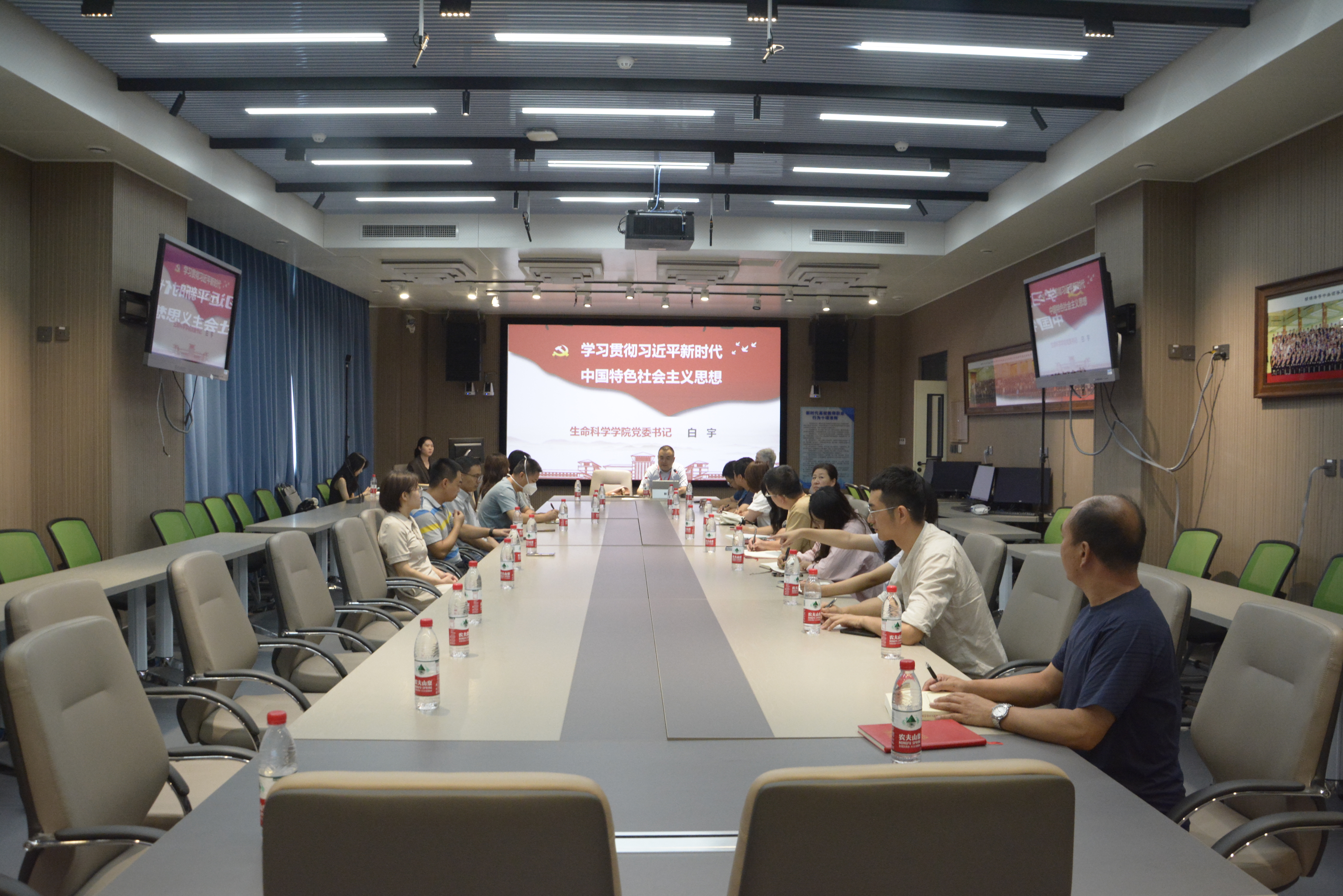 党委书记白宇讲授专题党课,生物化学与分子生物学系教工党支部和实验中心公共技术中心联合教工党支部党员代表、研究生党员代表、本科生党员代表参加学习。